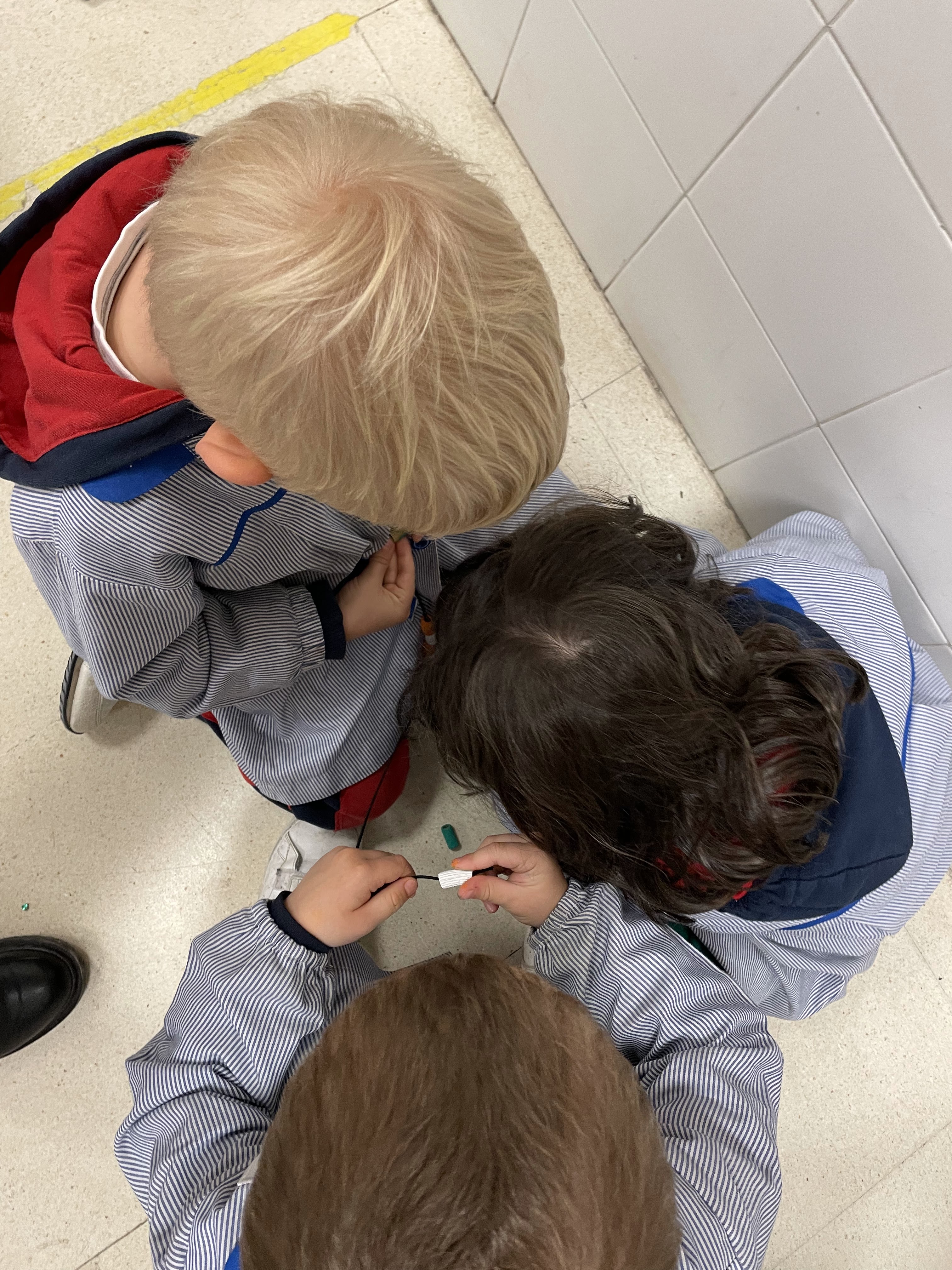 Para cerrar nuestro proyecto "Los amigos" hemos hecho una actividad muy bonita, trabajando la psicomotricidad fina y la coordinación realizamos collares de la amistad que se han regalado unos a otros.